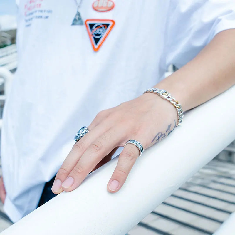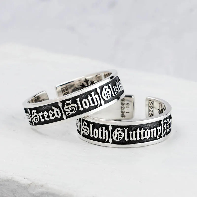 Unleash your daring and bold side with our Letter Graving Gothic Ring! Crafted from 925 sterling silver, this vintage-style wedding band is designed to make a statement. With a weight of 6 grams, it features a unique letter-inspired pattern, perfect for both men and women. Take a risk and add this striking piece to your collection! Order now!