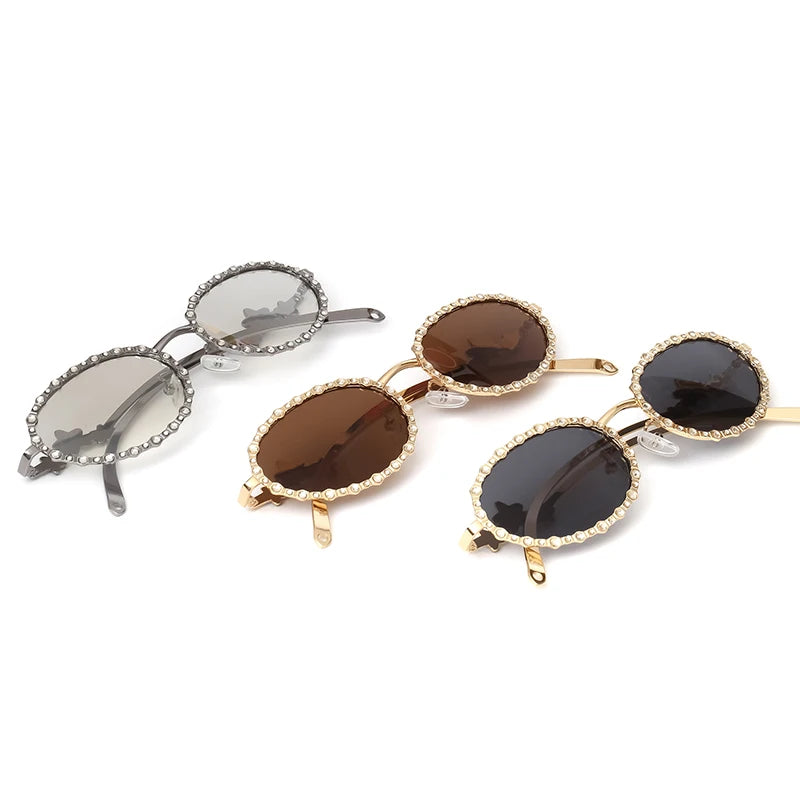 Make a fearless statement with these Small Oval Rhinestone Sunglasses. The sleek oval silhouette pairs with a lightweight alloy frame for effortless sophistication, while glittering rhinestone accents add unapologetic glamour. Bold enough to turn heads, refined enough to elevate any look. These aren't just shades—they're your declaration of confidence and style.