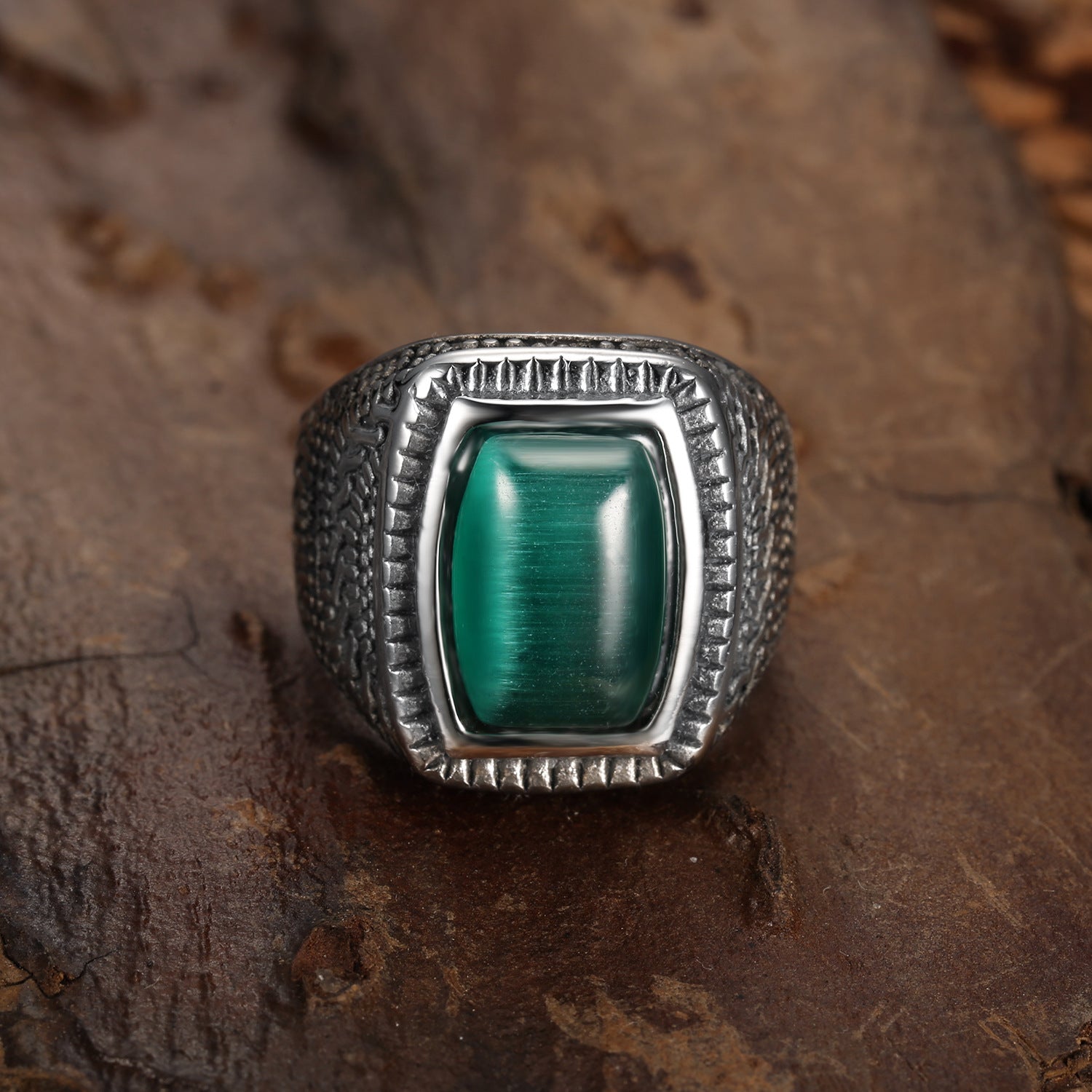 An elegant and masculine piece of jewelry, this men's ring will make a stylish addition to any wardrobe. Crafted with a titanium steel band and a green gemstone, this ring is a perfect complement to just about any outfit. It's a stylish addition to any casual or formal ensemble. This versatile piece is a great addition to any man's jewelry collection.