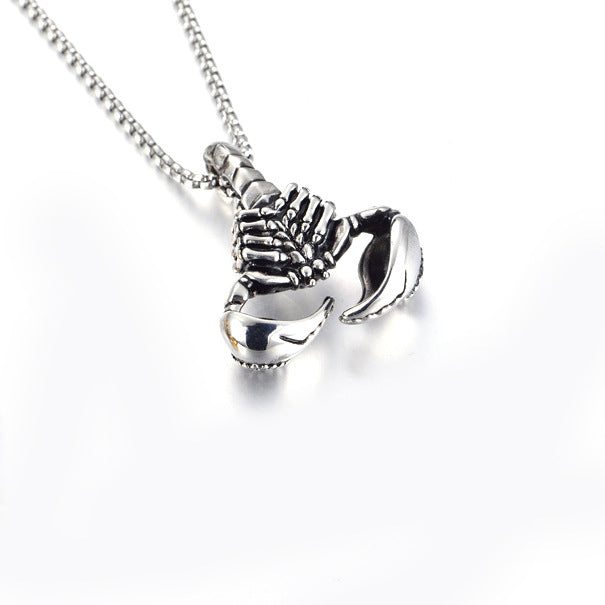 This is a trendy necklace that can be worn every day to any party. It is made with stainless steel and also has a big scorpion pendant. This necklace is silver in color and has a good quality finish.