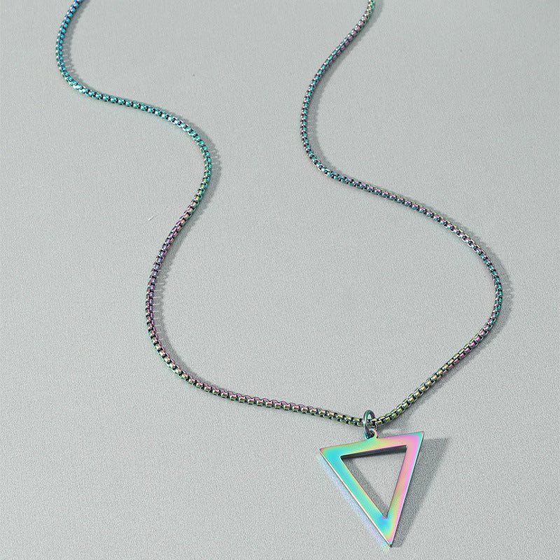 This sleek titanium steel triangle pendant is perfect for men who are looking for a little bit of geometric flair. Made from durable and lightweight titanium steel, this pendant will never tarnish and will stay as beautiful as the day you bought it. Plus, it's easy to match with any outfit!