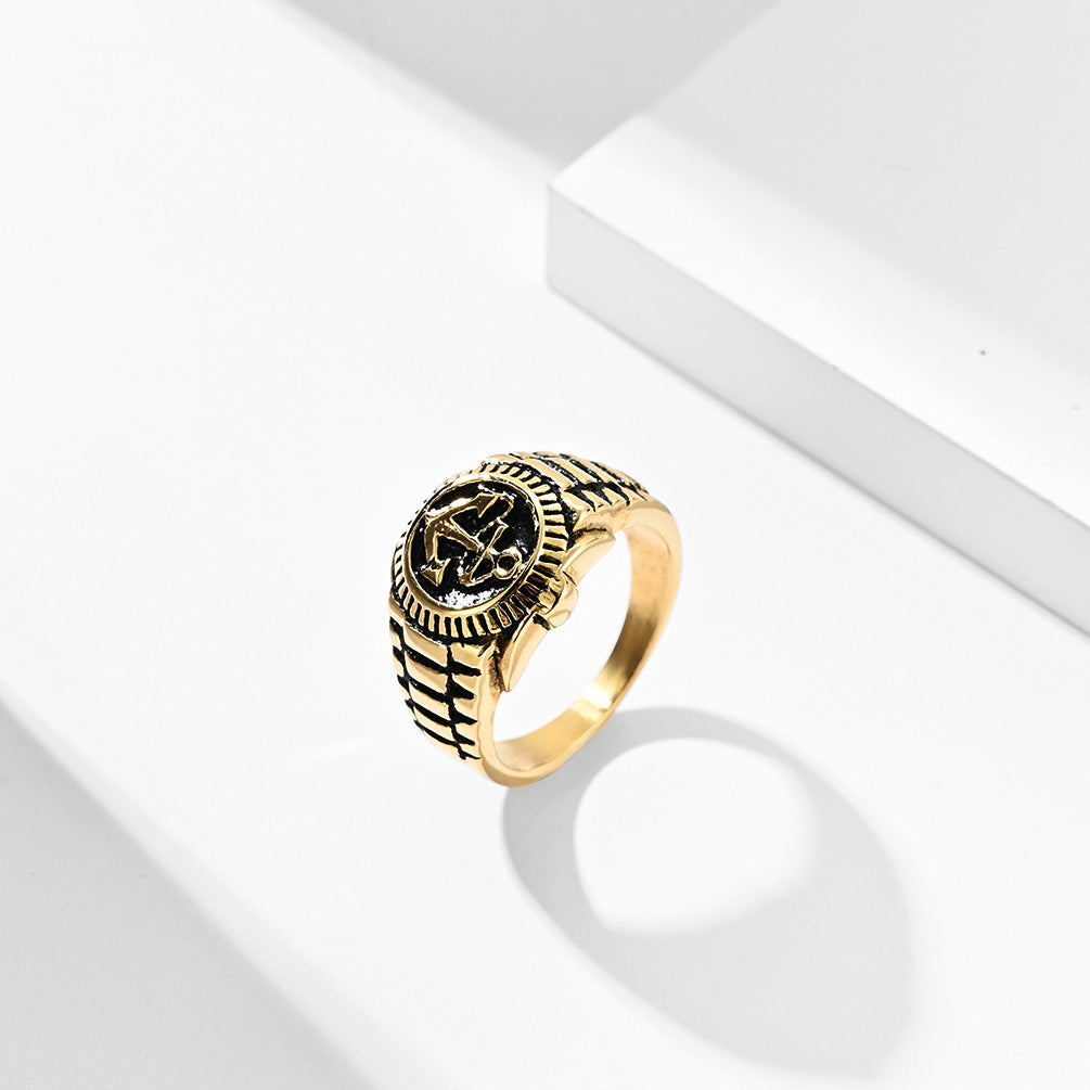Vintage Anchor Carved Ring