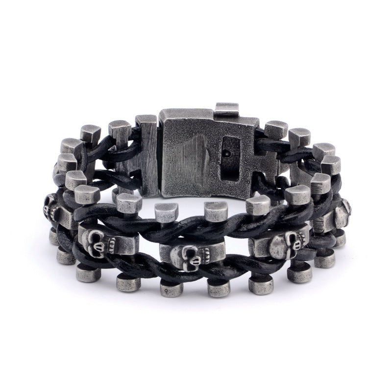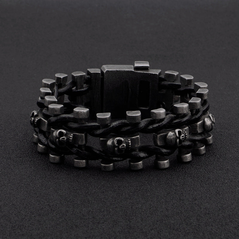 This stunning bracelet, a bold and stylish accessory that is perfect for those who want to express their edgy side. This bracelet is made of high-quality titanium steel, which ensures durability and longevity. The steel has a vintage finish that gives the bracelet a rustic and edgy look.