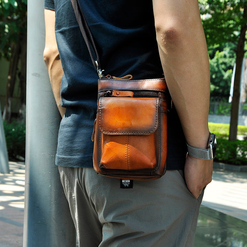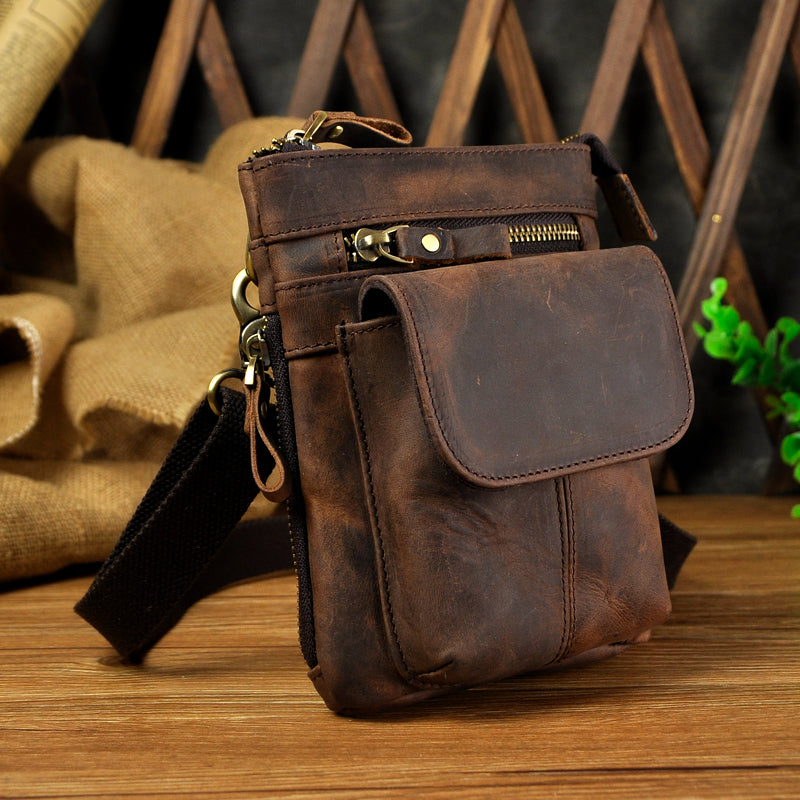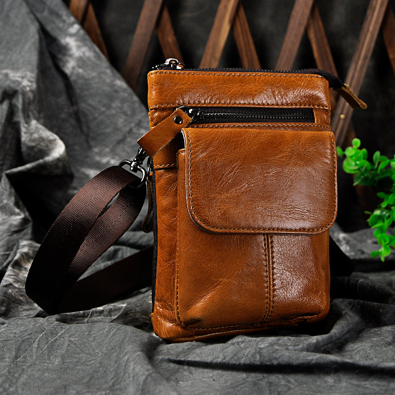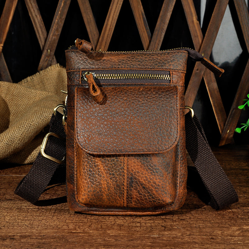 This Vintage Solid Mini Leather Sling Bag is stylish yet practical. Made of genuine leather, its durable construction and zipper closure provide a secure fit. With its vertical square shape, this bag is perfect for fashion-forward travelers looking for an on-the-go accessory.