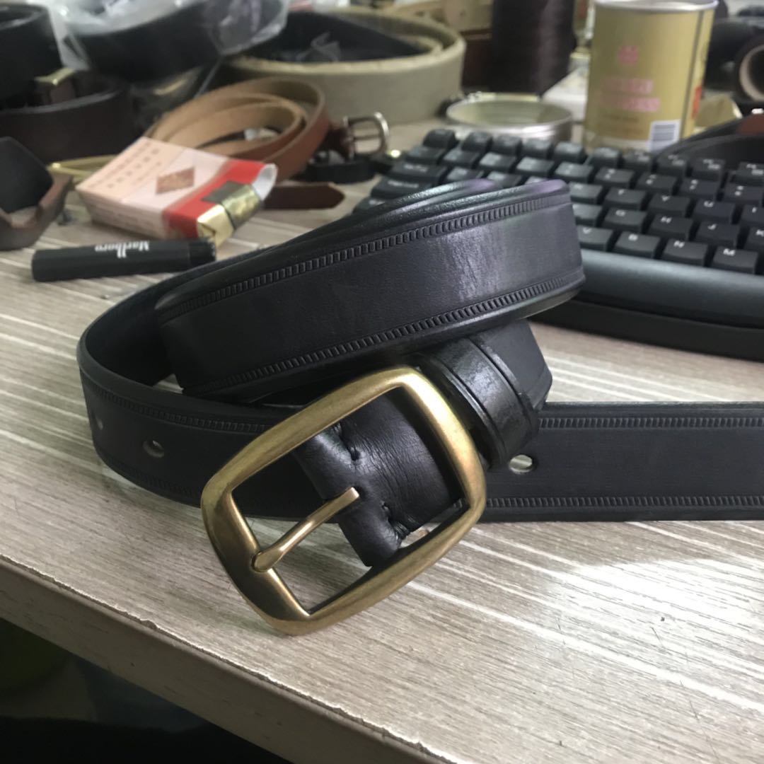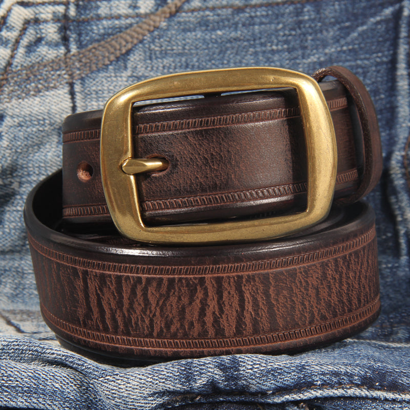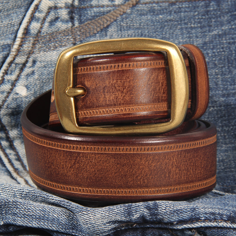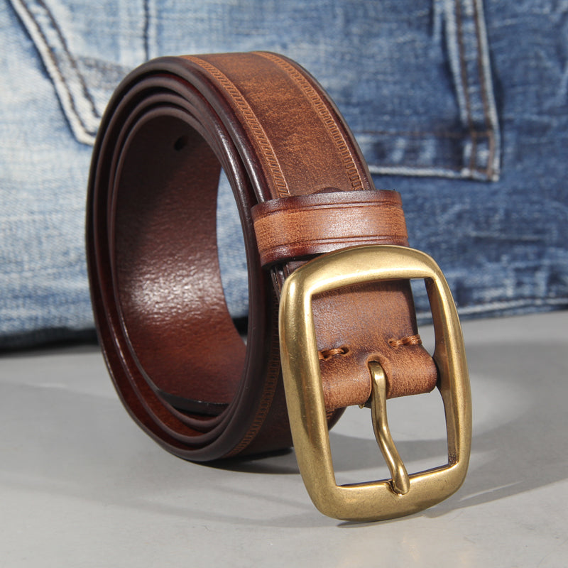 Wash Out Vintage Style Cowhide Belt with Copper Rectangular Pin Buckle